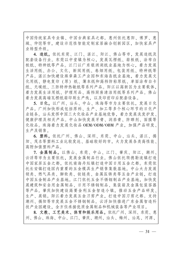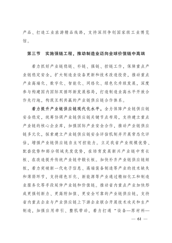 巩固提升战略性支柱产业。重点领域中高端产品供给能力增强,稳固并提升广东制造在全球产业链价值链地位。