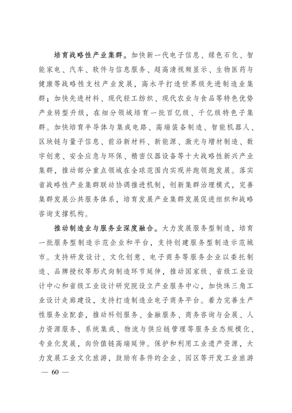 广东省人民政府关于印发广东省制造业