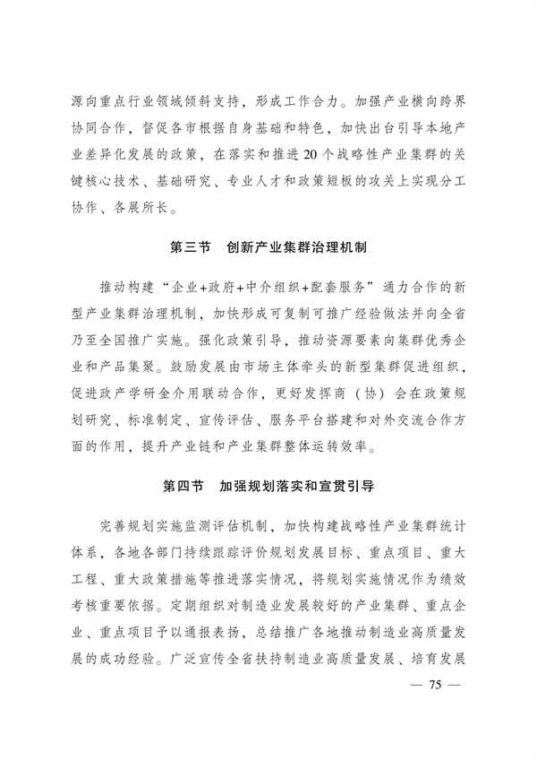 前瞻布局战略性新兴产业。“十四五”时期,保持十大战略性新兴产业营业收入年均增速10%以上,加快部分重点领域在全球范围内实现换道超车、并跑领跑发展,进一步提升我省制造业整体竞争力。