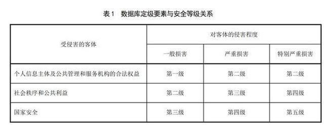 定级要素包括受侵害的客体以及对客体的侵害程度。其中受侵害的客体分为:个人信息主体及公共管理和服务机构的合法权益、社会秩序和公共利益、国家安全。对客体的侵害程度分为:无损害、一般损害、严重损害、特别严重损害。两者结合,形成对应的安全等级与安全要求。