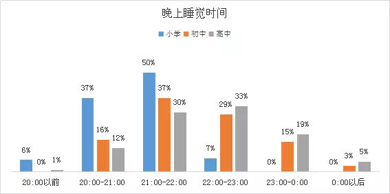 小学生能保证在晚上八点之前睡觉的只有6%,八成以上初高中生在晚上九点之后睡觉,而高中生更集中在十点后。