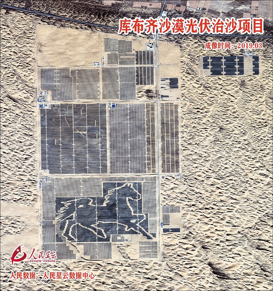 库布其沙漠,总面积1.86万平方公里,是中国第七大沙漠,曾经风沙肆虐。在沙漠腹地有178万块太阳能光伏板,占地10万亩,是国内沙漠地区最大集中连片光伏基地。采用“光伏+治沙+农林+旅游”的融合发展,板上发电、板间养殖、板下种植的方式,实现土地综合利用。经过30年的防沙治沙,如今已是沙峰绿谷交相辉映。