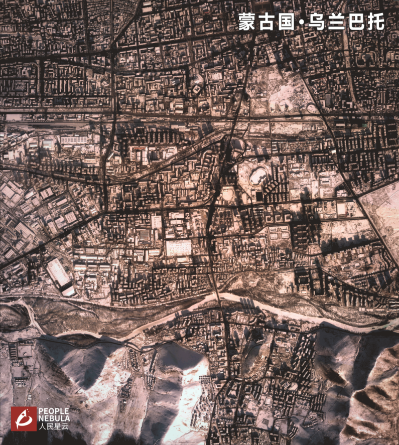 从人民星云卫星影像可以看到,植被主要覆盖在蒙古北部,南部则完全是沙地和裸地。在这地广人稀的国家,却有着极高人口密度的首都--乌兰巴托,却聚集了超过150万的人口,相当于这个国家总人口的一半。