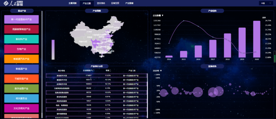 人民数据——面向特定行业工业互联网的数据资产管理系统采购系统,基于国家工业互联网大数据中心,明确产业链上中下游各环节,详细梳理产业与国标行业类别的对应关系,实现对产业发展的全面剖析。