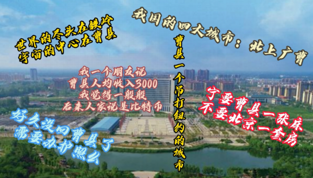 “好久没回曹县了,现在回去需要办护照吗”“宁要曹县一张床,不要北京一套房”“我国的四大城市:北上广曹”……近日,山东的一个小县城曹县火了,“曹县梗”更是一发不可收拾,被人们津津乐道。