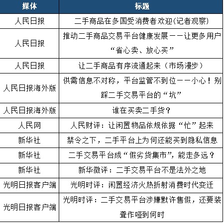 图表2:2020年以来主流媒体关于二手交易部分相关报道