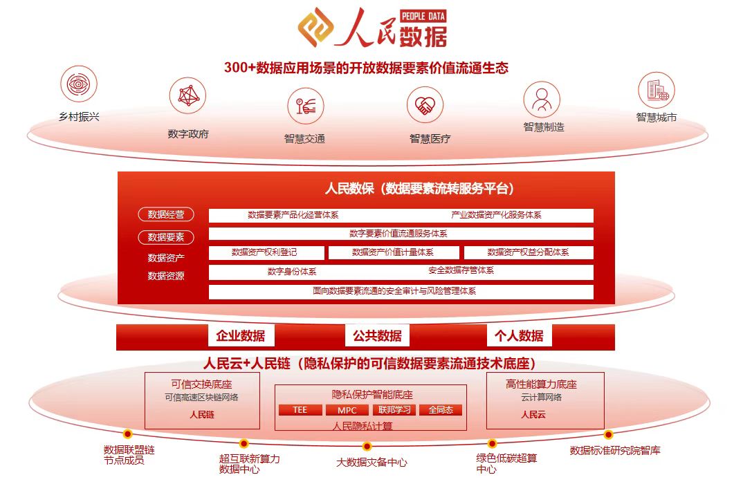 据了解,2019年,人民数据推出全国首个数据确权平台。经过三年的持续研发与升级,2022年,依托“人民链”与“人民云”的底层技术支撑,人民数据全新升级打造了“数据确权流通平台”,提供包括云、区块链、数据确权、数据授权、可信计算、数据交易结算等数据确权流通的闭环解决方案。目前,已累积实现数据要素确权达200多亿条,让数据合规流通,服务数字乡村、智慧农业应用场景。