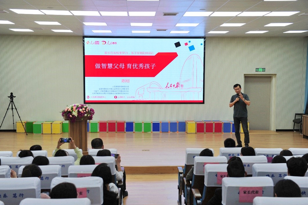 人民德育家庭教育专家委员会专家陈刚以《做智慧父母,育优秀孩子》为题,做了“家长夜校”首场讲座。讲座内容深入浅出,兼具理论高度、实践深度及情感温度,对家庭育人具有很强的针对性、指导性和可操作性,使线上线下聆听的家长深受教育和启发。