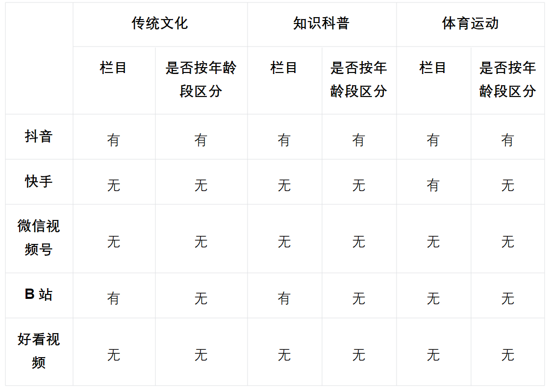 表:五大短视频平台在传统文化、知识科普、体育运动的内容测评