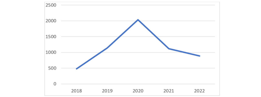 2018-2022年关键词“互联网+反不正当竞争”的判决数量统计图
