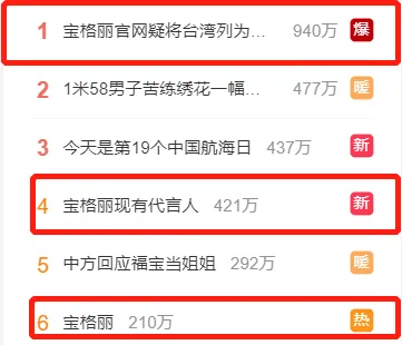 当天本是宝格丽正式发布与游戏王者荣耀合作推出联名数字皮肤的日子,但这个话题很快就被争议盖过。当日,“宝格丽官网疑将台湾列为国家”话题在微博热搜榜上攀升至第一位。甚至还有网友还列举出曾与宝格丽合作的明星,追问众明星何时与宝格丽解约。