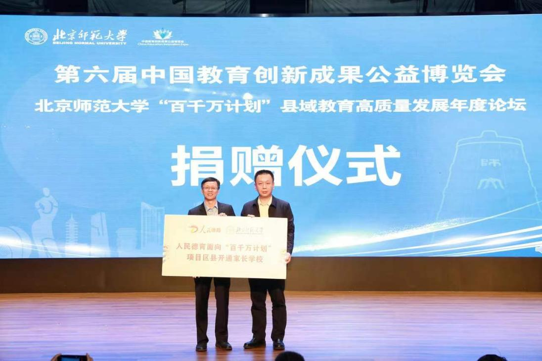 在论坛上,由中国西部人才开发基金会联合人民德育发起的家校社协同育人公益项目,向北师大“百千万计划”部分项目区县开通家长学校服务,旨在充分发挥中央媒体在助力青少年思想成长中的关键作用,切实推动构建家校社协同育人新格局,不断探索和实施针对新时代青少年家庭教育的有效策略,建立健全覆盖城乡一体的家庭教育指导体系,推动我国县(区)域教育高质量发展。