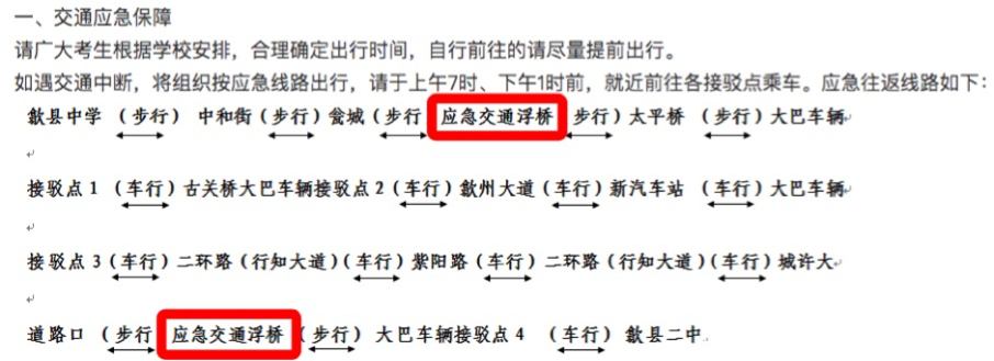 歙县已安排冲锋舟等工具就位,应急浮桥连夜搭建,为奔赴考场的考生保驾护航。