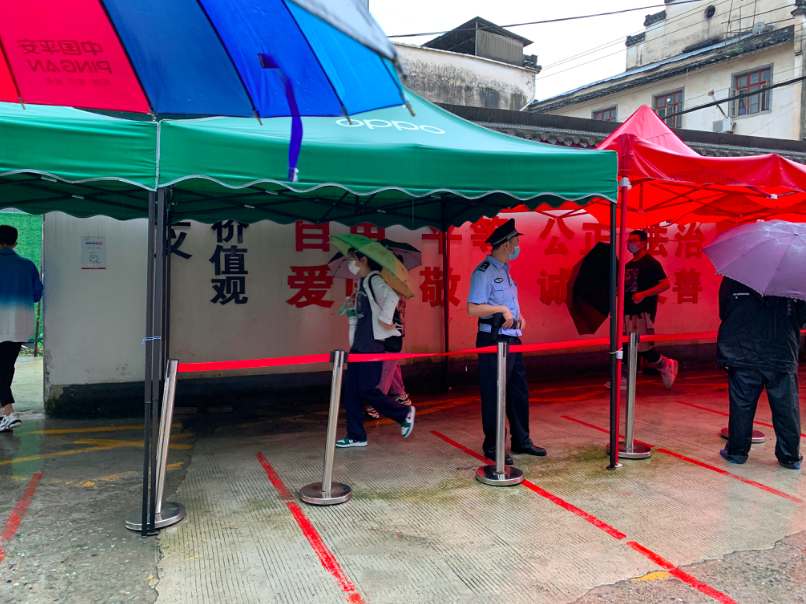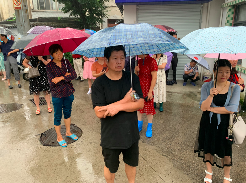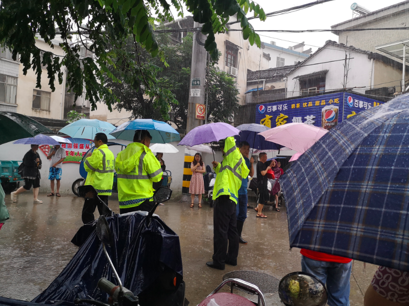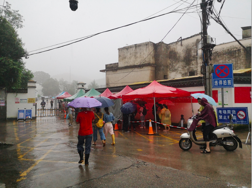 今早,中国青年报记者前往歙县中学考点,雨依然不小。
