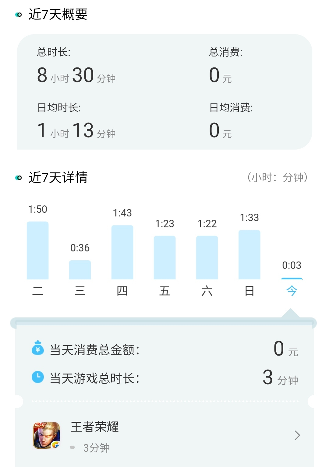 点击进入详情页,甚至还能看到最近7天的统计情况,总共玩多长时间,每天玩多长时间,每次登陆哪款游戏,登录了多久,什么时候退出游戏。