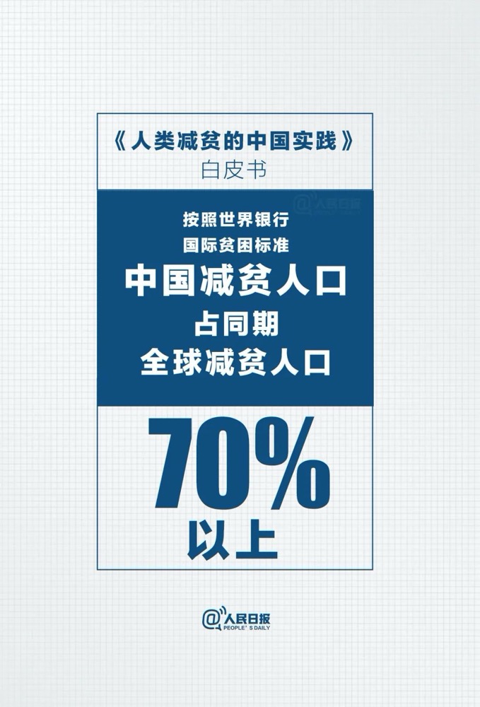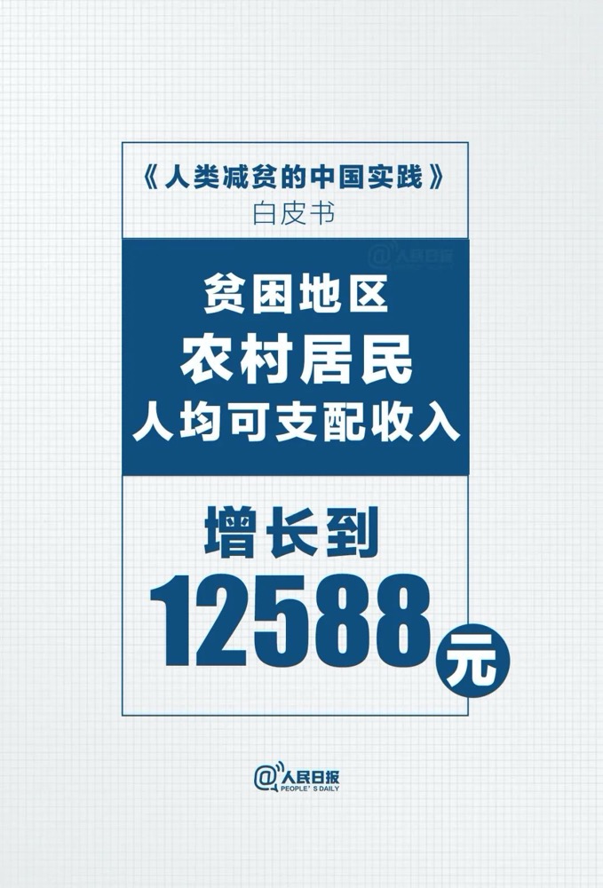 “贫穷不是命中注定,贫困并非不可战胜。”白皮书中列举了中国脱贫攻坚取得的一系列成就,中国向世界交出一份亮眼的减贫成绩单。