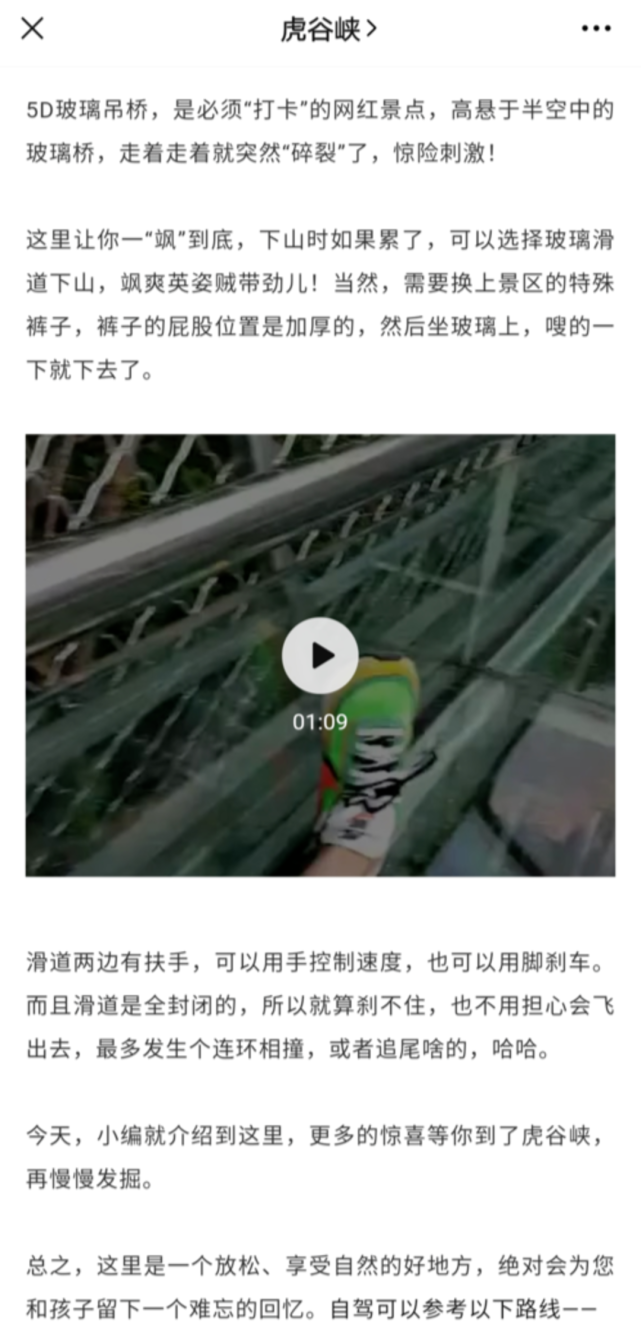 ▲ 虎谷峡官方微信上对景区玻璃滑道的介绍
