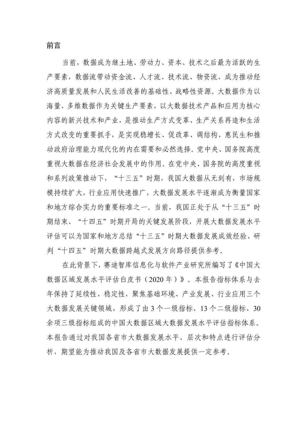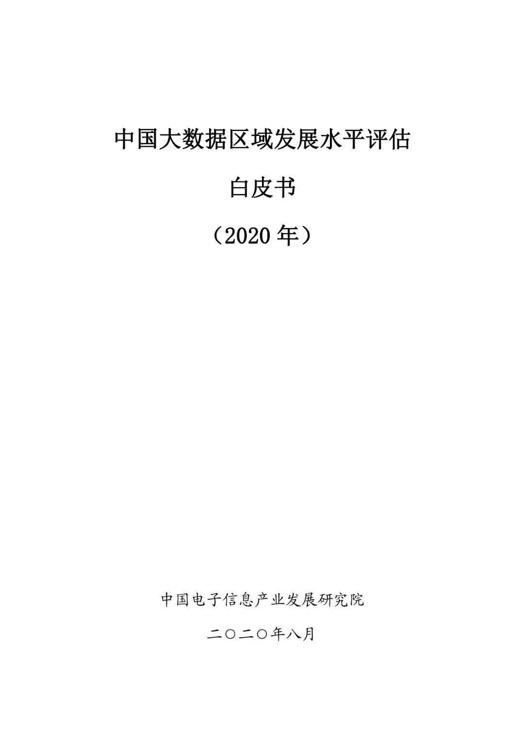 重磅发布!中国大数据区域发展水平评估白皮书(2020年)