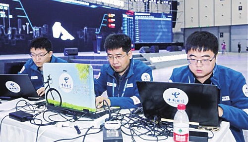 在工业互联网安全技术技能大赛上,选手正在进行技术比拼。