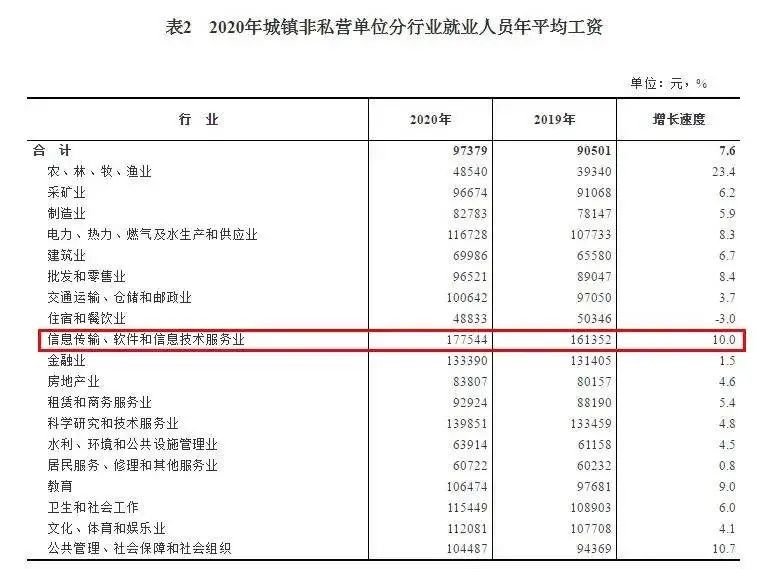 在疫情冲击下,平均工资的增速回落至多年较低水平,但是仍然保持增长。 其中,城镇非私营单位平均工资超9.7万元;程序员还是最吃香,IT业年平均工资超17万元居首。