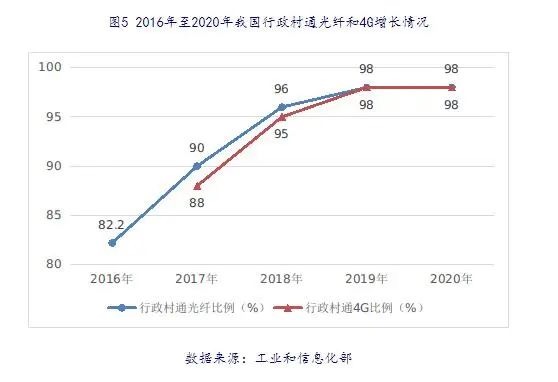 在网络扶贫方面,《报告》中提到,贫困地区不通网难题历史性得到彻底解决。截至2020年底,贫困村通光纤比例由电信普遍服务试点之前不到70%提高到98%,深度贫困地区贫困村通宽带比例从25%提升到98%,超额完成2020年“宽带网络覆盖90%贫困村”的目标。基础电信企业面向贫困地区开展精准降费,对建档立卡贫困户选择使用光纤宽带等基础通信服务资费套餐给予最大幅度折扣优惠,已惠及超过1200万户贫困群众,让贫困群众“用得起”信息服务。