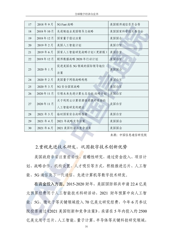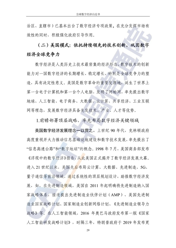 对于我国数字经济的战略取向与发展路径,白皮书提出,我国应立足产业基础并发挥市场活力,通过有效市场和有为政府实现相互促进。具体来说,我国应在数字经济发展中重点布局大市场+完整工业体系+充满活力的数字化创新,例如重点发展5G、人工智能、移动支付等产业。