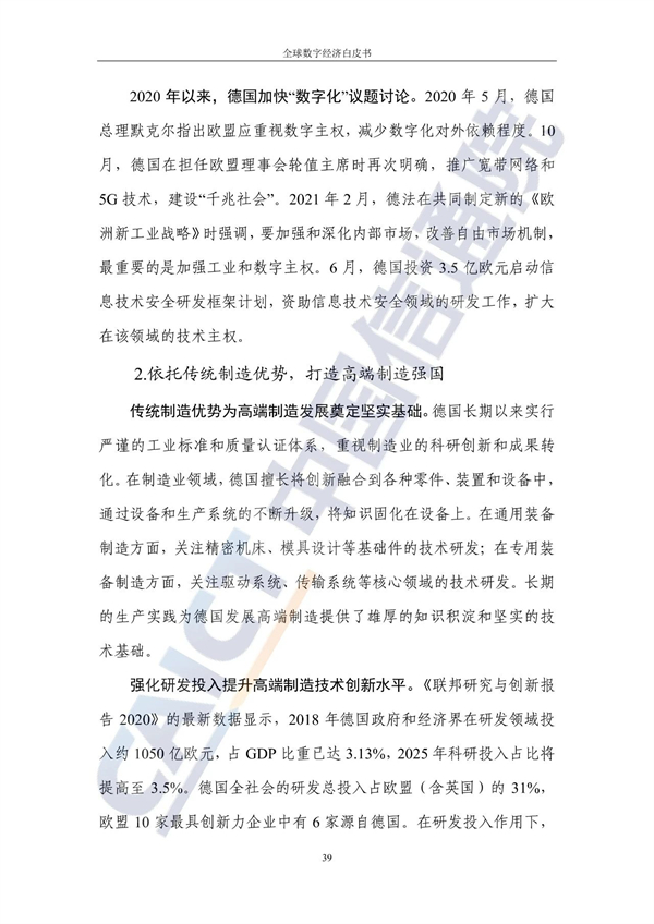 从占比看,德国、英国、美国数字经济在国民经济中占据主导地位,占GDP比重超过60%。