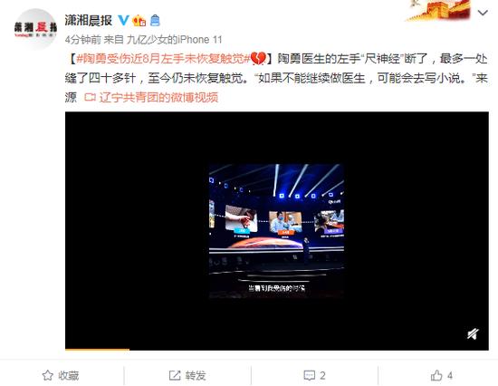 陶勇受伤近8月左手未恢复触觉:可能会去写小说