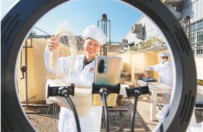 在江西省丰城市泉港镇西岸村,村民借助互联网直播销售传统手工挂面。 占佩璐摄(人民图片) 每万人拥有5G基站数26个,5G用户普及率达56 ...