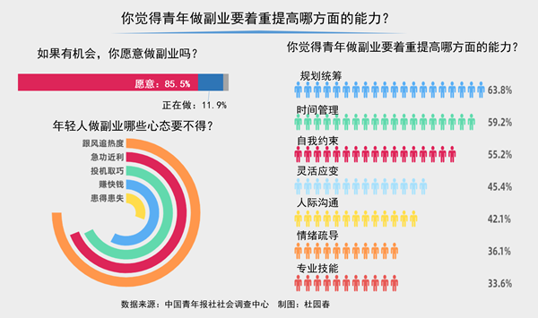 超八成受访青年表示如有机会愿意开展副业 规划能力最重要 64.4%受访青年指出做副业跟风心态最要不得