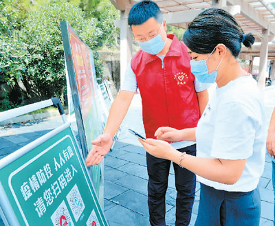 江西省德兴市大茅山风景名胜区党员干部正在景区入口指导游客扫码进入景区。 卓忠伟摄(人民图片) 在浙江省湖州市仁皇山生活广场 ...