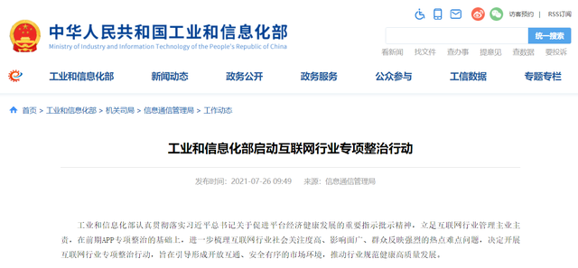 记者从工信部网站获悉,工业和信息化部立足互联网行业管理主业主责,在前期APP专项整治的基础上,进一步梳理互联网行业社会关注度高 ...
