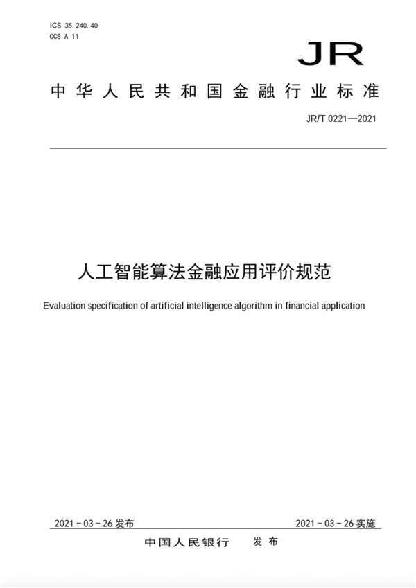 为全面提升人工智能技术在金融领域应用和管理水平,推动金融与科技深度融合协调发展,中国人民银行制定了《人工智能算法金融应用评价规范》(以下简称《规范》),于近日正式印发。
