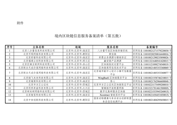 附件:境内区块链信息服务备案清单(第五批)