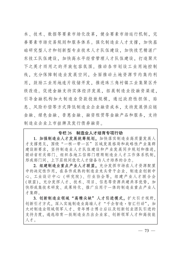 广东省人民政府关于印发广东省制造业