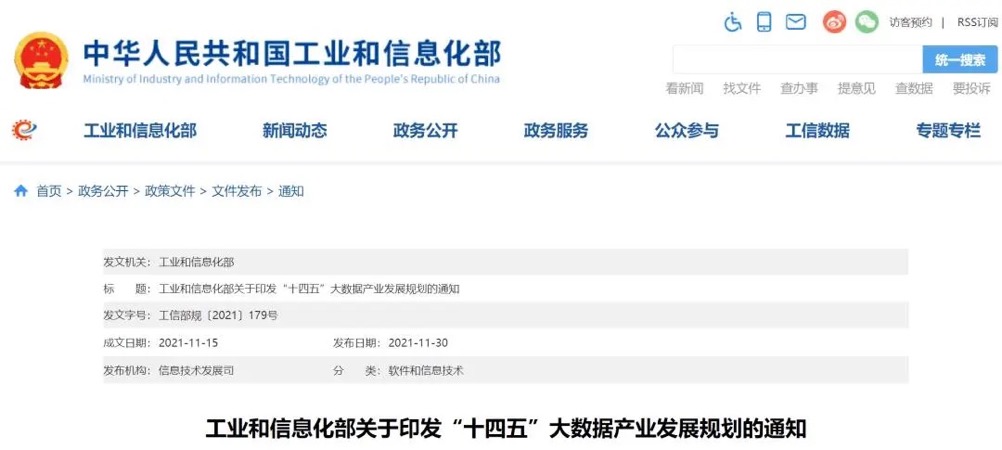 工信部印发《“十四五”大数据产业发展规划》