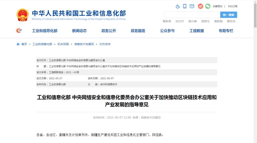 工业和信息化部 中央网信办印发《关于加快推动区块链技术应用和产业发展的指导意见》