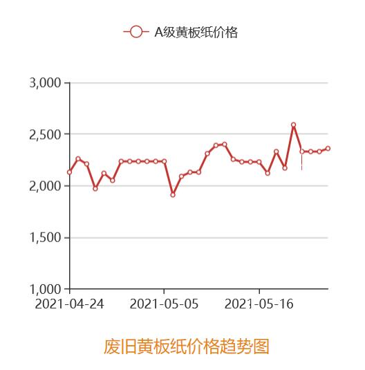 图为黄板纸价格走势图 数据源于中国纸业协会