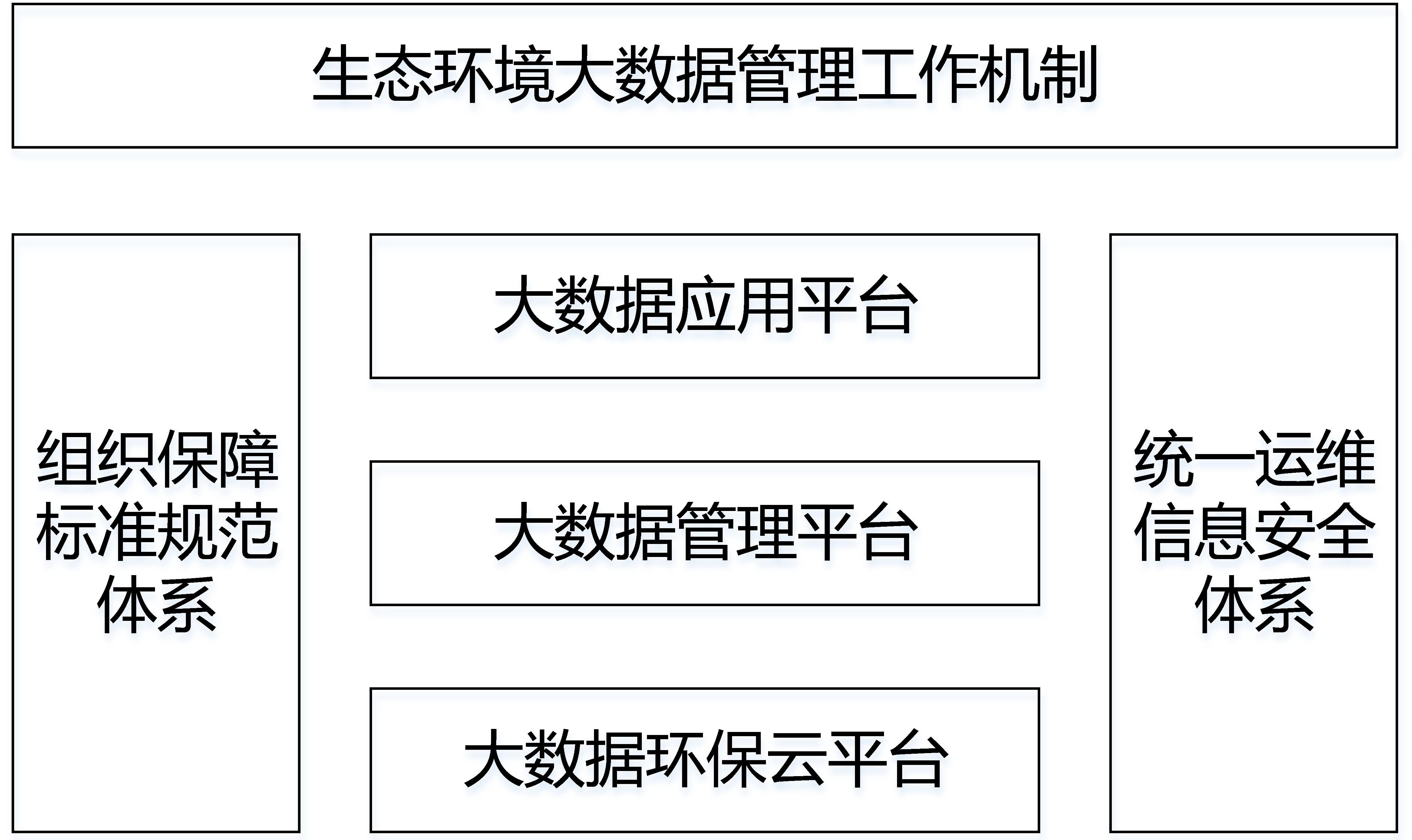 《方案》指出,生态环境大数据总体架构应为“一个机制、两套体系、三个平台”。一个机制指的是生态环境大数据管理工作机制,两套体系指的是组织保障和标准规范体系、统一运维和信息安全体系,三个平台即大数据环保云平台、大数据管理平台和大数据应用平台。