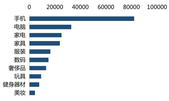报告根据人民数据网络舆情管理系统数据发现,近3个月内,全网“二手商品交易平台”相关信息发布量达10万余条。在二手商品相关信息发布方面,二手手机相关信息热度最高,电脑、家电、家具、服装、数码、奢侈品、玩具、健身器材、美妆等二手品类热度位居前列。