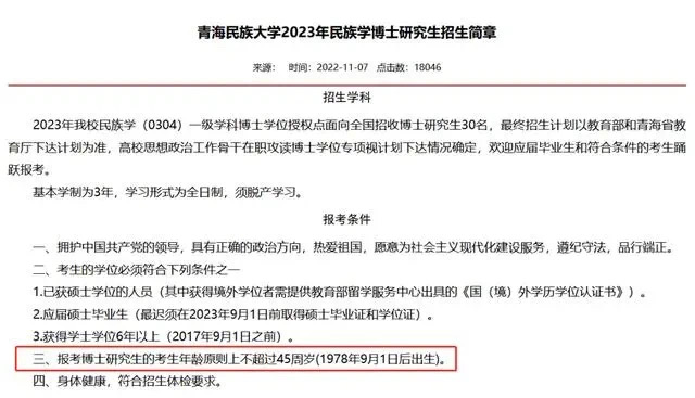 而根据《青海民族大学2023年民族学博士研究生招生简章》,报考博士研究生的考生年龄原则上不超过45周岁(1978年9月1日后出生)。资料显示,阿进录为1973年出生。对于网友提到的“年龄不符合报考条件”,上述工作人员表示:“他资格审查是通过的。”