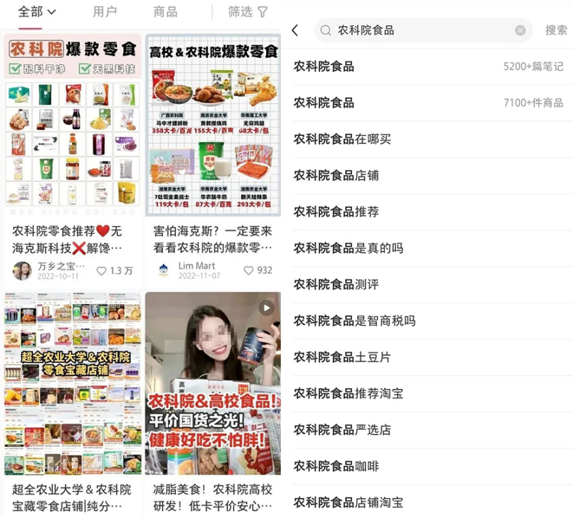 小红书“农科院&高校食品”相关笔记