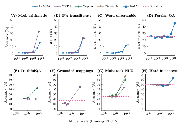 数据来源:Wei, Jason, et al. "Emergent abilities of large language models." arXiv preprint arXiv:2206.07682 (2022).