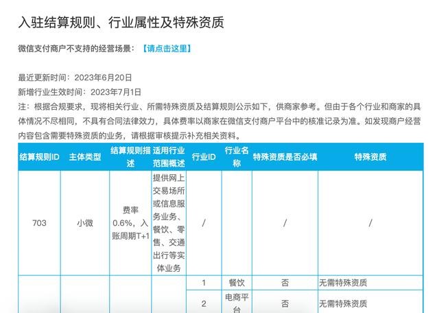 微信支付商户最新的行业费率表