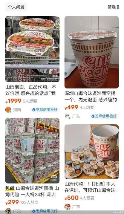 近日,“山姆泡面桶被炒至1999元”话题引发舆论热议。据悉,深圳山姆店一款售价168元的“合味道泡面桶”走红网络,引发代购疯狂炒卖。在二手平台上,该泡面桶一度被炒至1999元一桶,仍有不少消费者表示想要。深圳市监局介入调查后回应,山姆销售过程中未存在恶意加价行为。