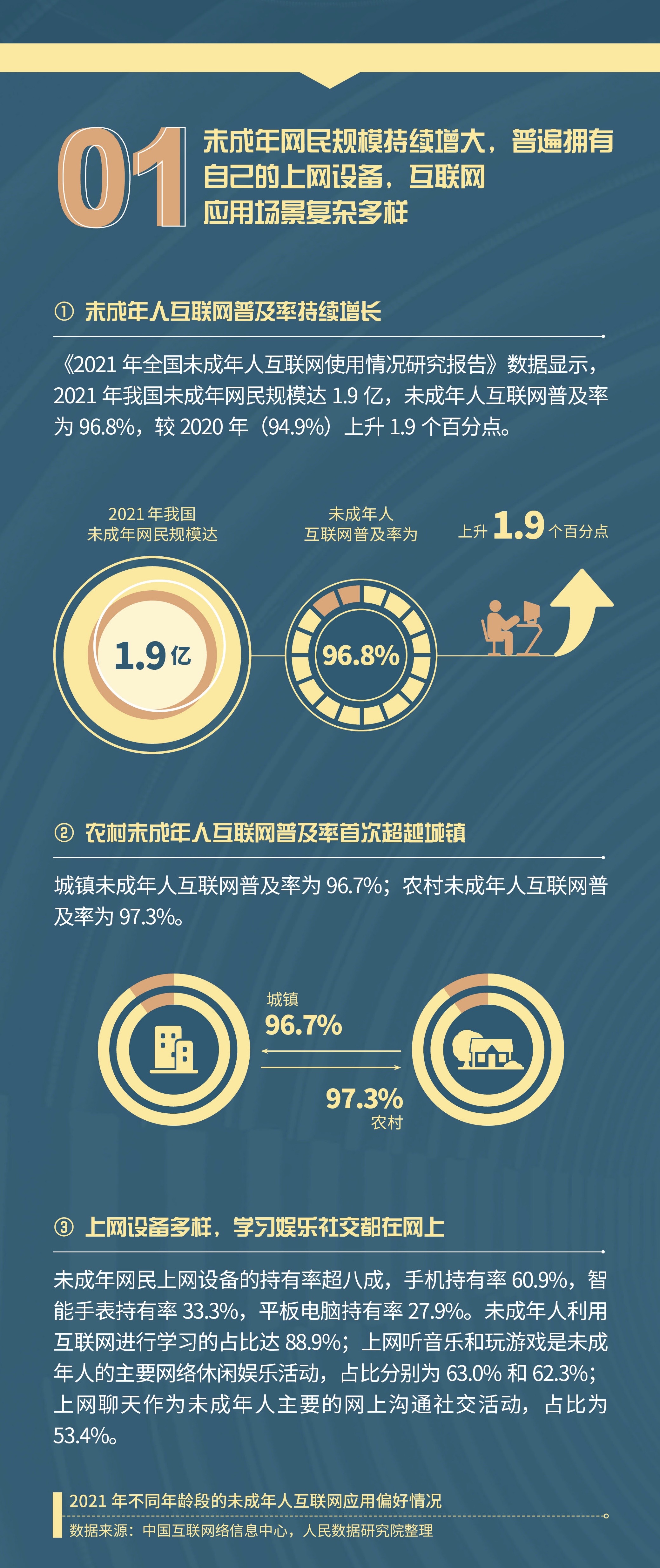 数字时代,相较于成年人,未成年人普遍缺乏对个人信息数据、隐私数据、内容安全等自主保护意识、能力与手段,在互联网上进行的操作容易使其数据遭到泄露和非法使用,大大增加其数据权益受到侵害的风险。随着我国未成年人互联网普及率的提高,进一步重视和加强未成年人数据的特殊保护是紧迫且必要的。人民数据研究院《2023 我国未成年人数据保护蓝皮书》发布,从个人信息保护、隐私保护、内容安全保护三个层面来探讨未成年人数据的规范与保护,并列举出最需要进行未成年人信息保护的三大行业、五大应用场景,旨在促进未成年人身、心、智健康发展,切实保障未成年人群体数据权益。