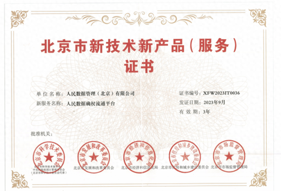 人民网北京11月17日电 (王绍绍)近日,人民网旗下人民数据公司自主研发的人民数据确权流通平台获得《北京市新技术新产品(服务)证 ...
