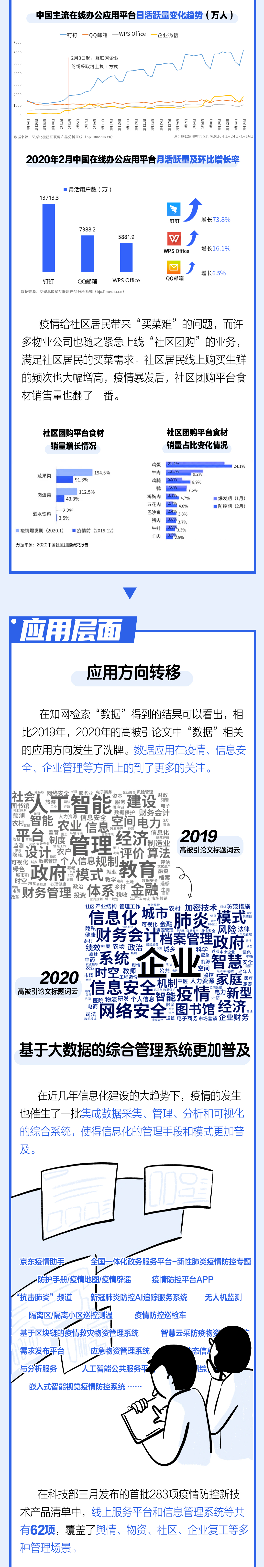 “买菜线上化”只是疫情给社区生活带来的众多变化之一。疫情导致的隔离与封城迫使许多生活生产活动向线上转移,网购、直播、在线协同办公、网课、在线诊疗等各种数字化技术与互联网平台应运而兴。