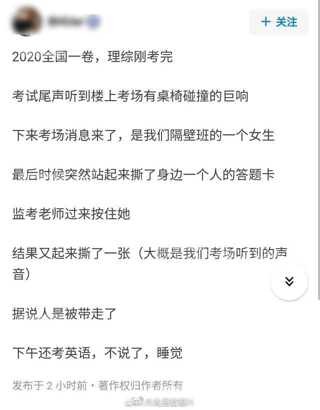 有网友称平顶山一中考场有考生撕别人的答题卡。
