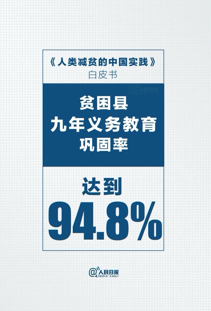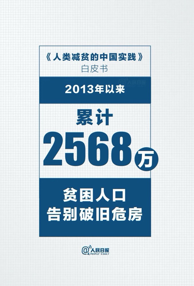 “贫穷不是命中注定,贫困并非不可战胜。”白皮书中列举了中国脱贫攻坚取得的一系列成就,中国向世界交出一份亮眼的减贫成绩单。